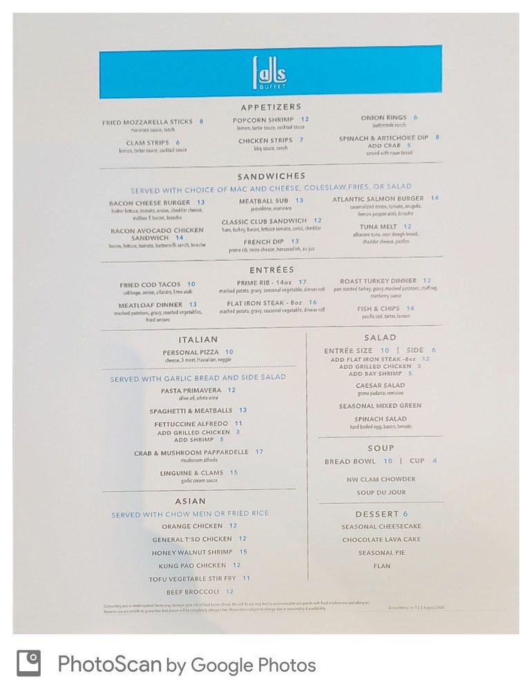 Introducing Falls Buffet, a casual dining experience located in Snoqualmie, WA. This buffet-style restaurant offers a variety of dishes for all taste buds. From their full bar and happy hour specials to their outdoor seating and free Wi-Fi, Falls Buffet provides a welcoming atmosphere for all guests. Their menu is perfect for groups and families, with options for both lunch and dinner. With the convenience of taking reservations, delivery, and takeout, Falls Buffet makes dining easy and enjoyable. The restaurant also offers catering services for special events. Whether you're looking for a quick bite or a leisurely meal, Falls Buffet has something for everyone. Don't miss out on this must-try dining experience in Snoqualmie.
